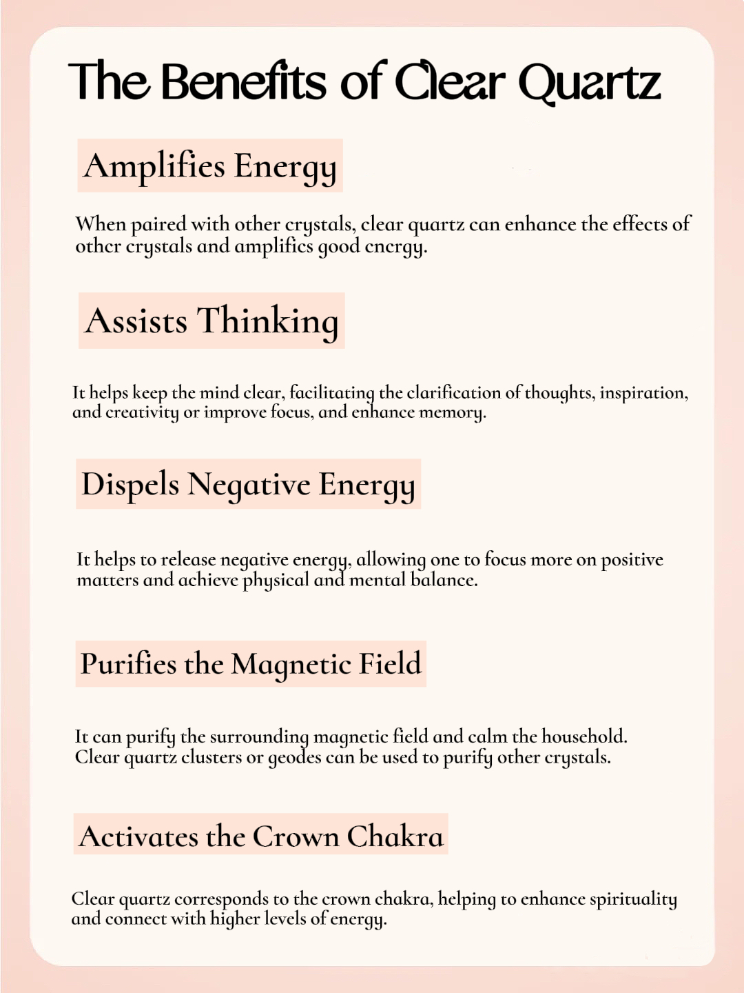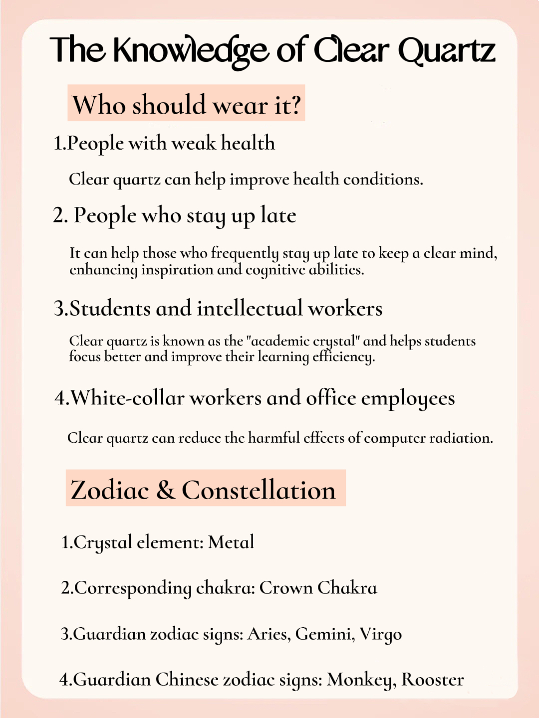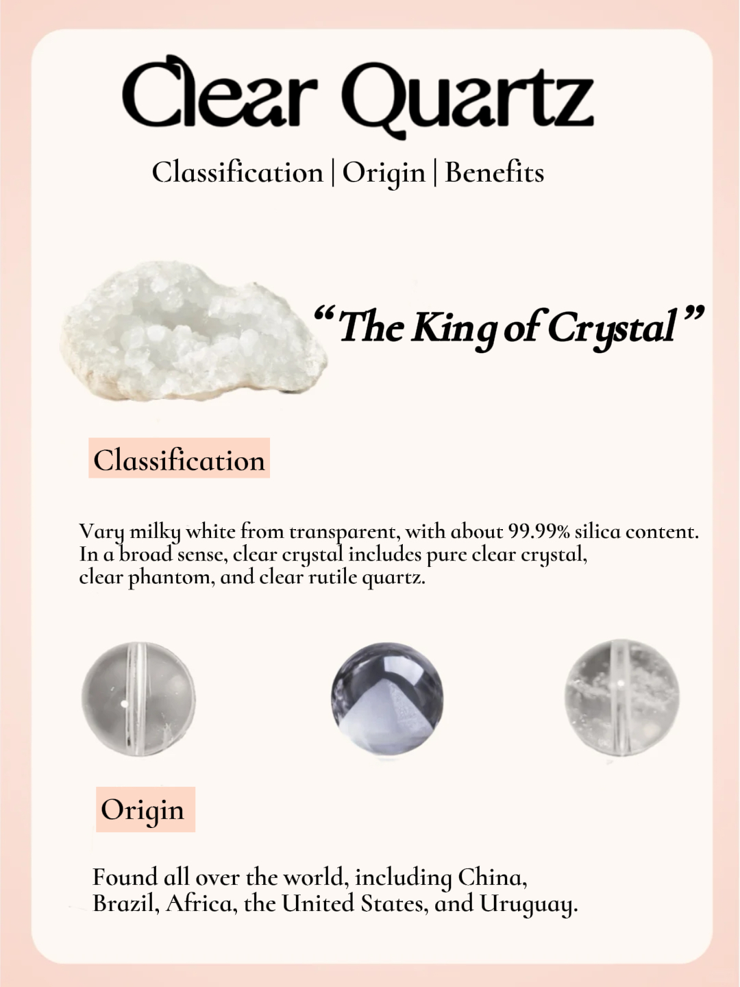 Clear quartz is crystal clear and pure, with a wide range of applications, offering benefits from interpersonal relationships, health, purification, and protection against backstabbing. Therefore, it is known as the "King of Crystals" and is a popular choice for many beginners. Its clear and clean nature makes it easy to complement other colors of crystal in jewelry, bringing a simple and pure power in both visual appeal and efficacy.